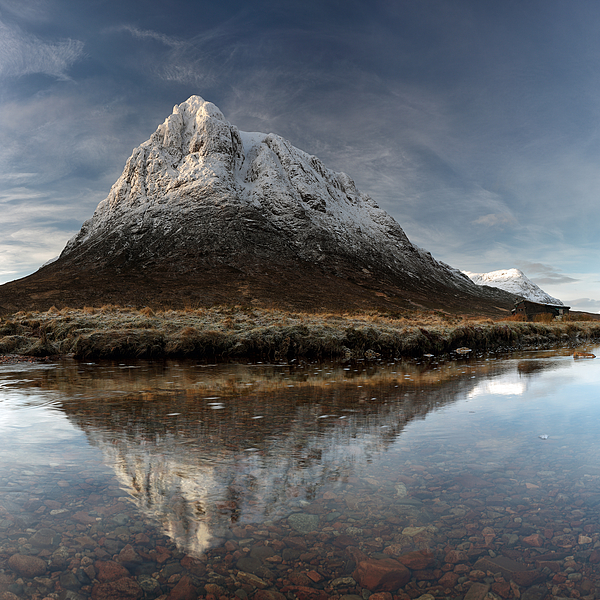 Buachaille Etive Mor (the great herdsman of Etive) reflecting on the River Coupall. Glencoe, Scotland.